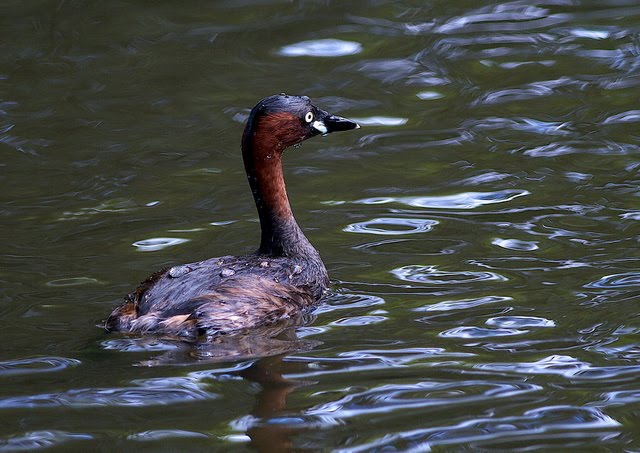 いつもの近所の公園に、今日も一羽のカイツブリ(きっとオス)が。かなり近くまで接近してきました。この写真はほとんどトリミングしていません。